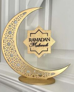 Gold Wooden Ramadan Mubarak Crescent Table Décor