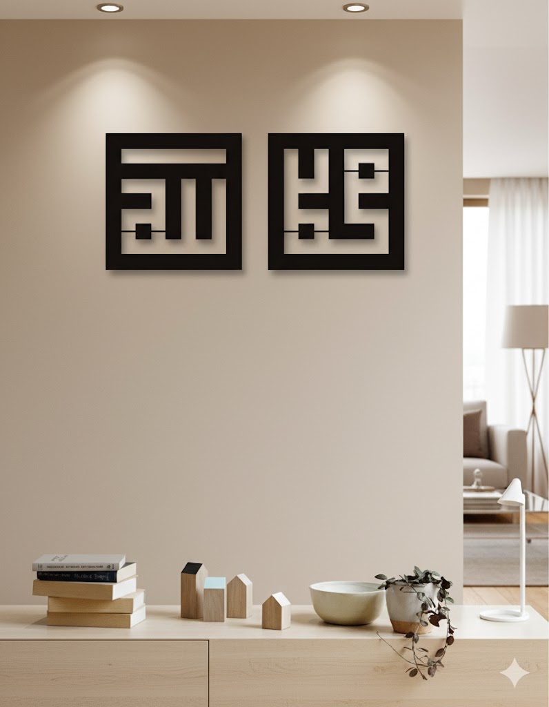 Black Acrylic Kufi Calligraphy Wall Art Set