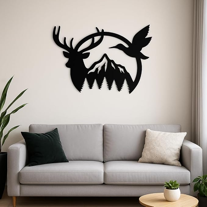 Black Acrylic Deer & Duck Mountain Wall Art – 60×50 cm