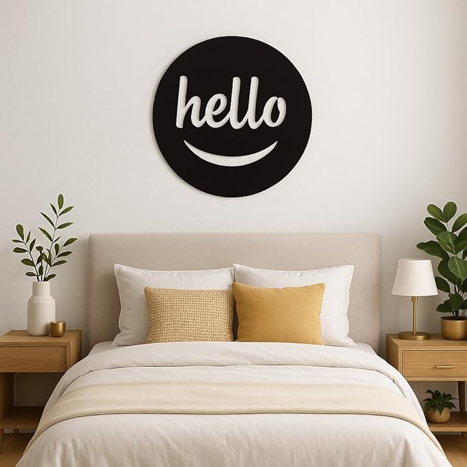 Black Acrylic Hello Wall Art with Smiley – 40×40 cm.