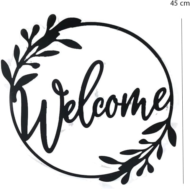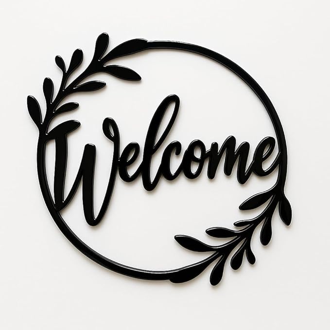 Welcome Floral Wall Art – Black Acrylic Round Décor, 45×45 cm .