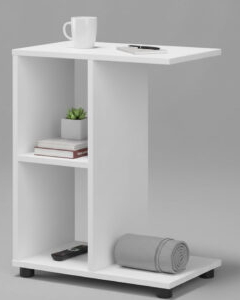 Modern White C-Shaped Wooden Side Table with Open Shelves – 47x30x60 cm