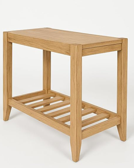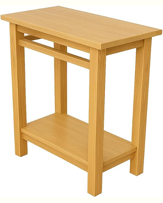 Natural Wood Side Table with Shelf .