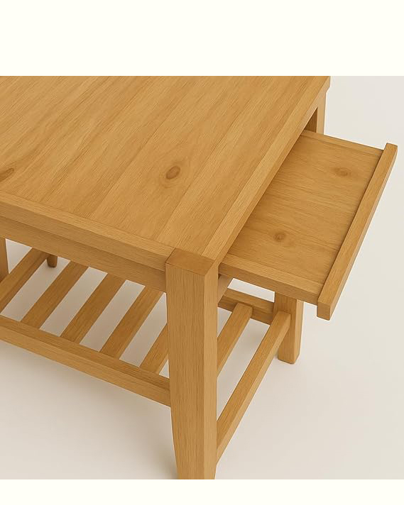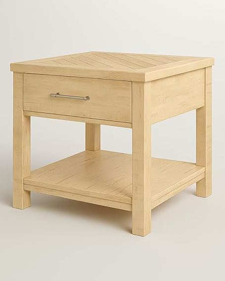 Rustic Natural Wood End Table with Drawer & Shelf – 61 cm .