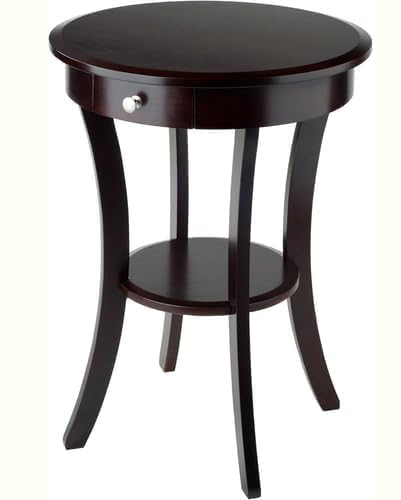 Round Wooden Side Table with Drawer .