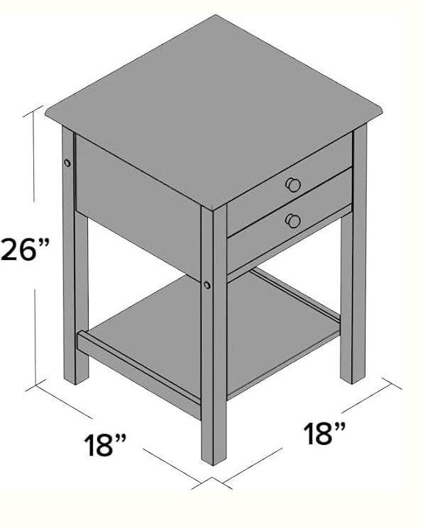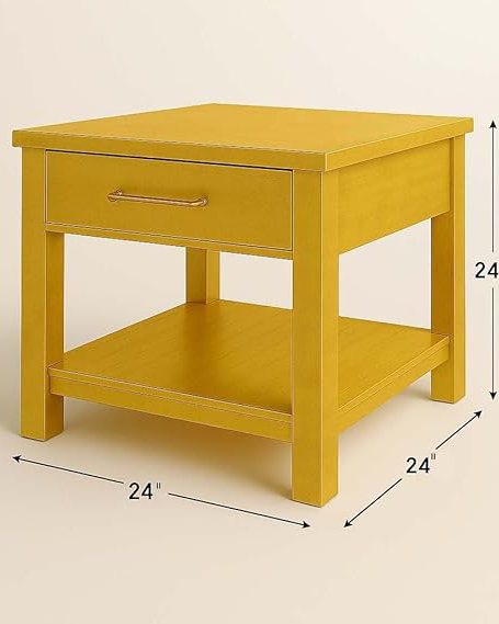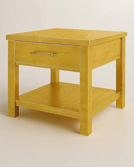Rustic Gold Wood End Table with Drawer & Shelf .