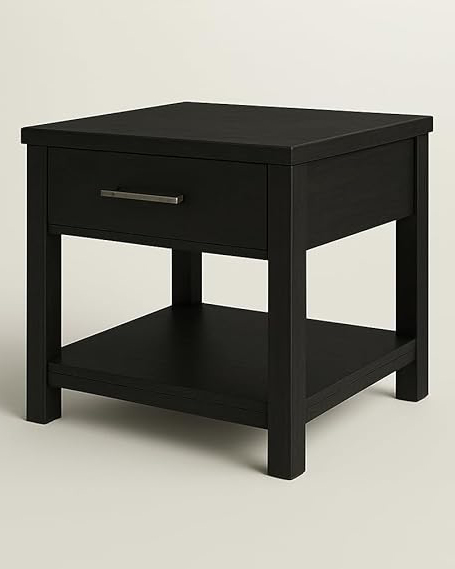 Rustic Black Wood End Table with Drawer & Shelf .