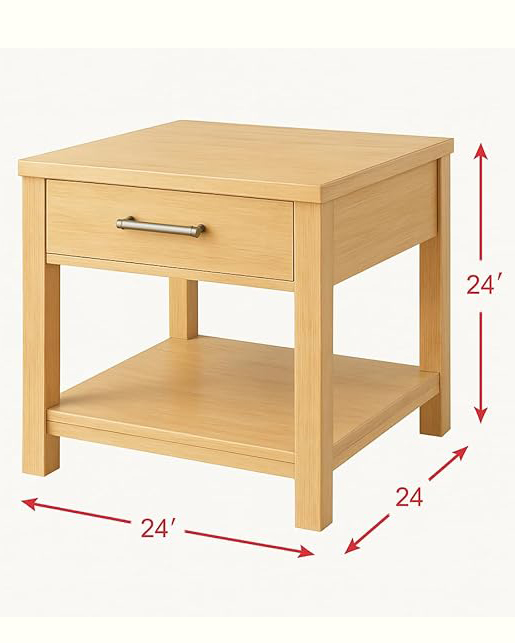 Natural Wood End Table with 2 Drawers & Shelf – 45x45x65 cm .