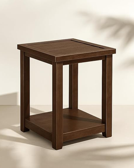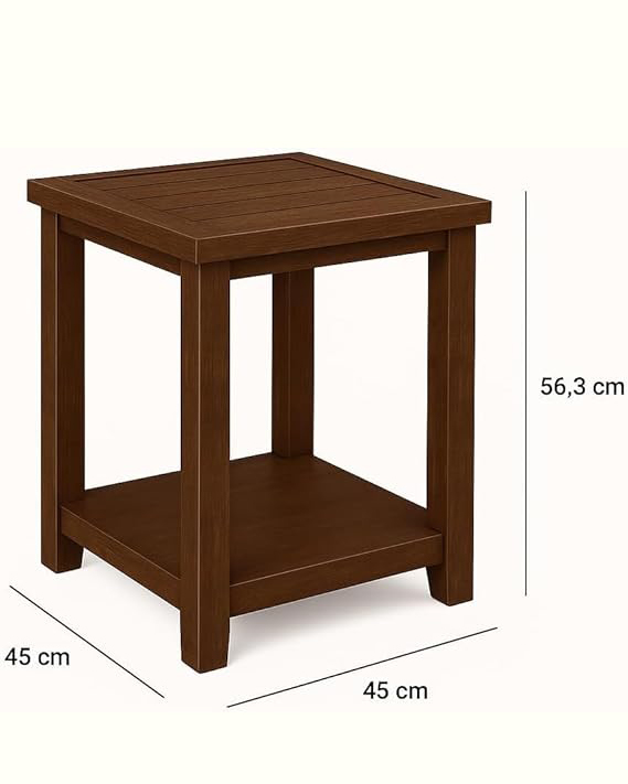 Rustic Brown Wood End Table with Shelf – 45 x 45 x 56.3 cm .