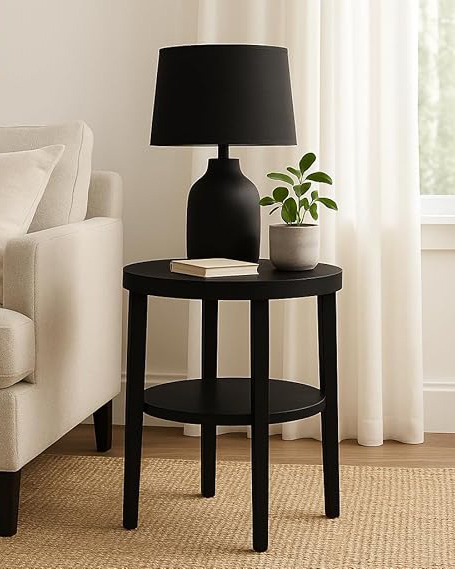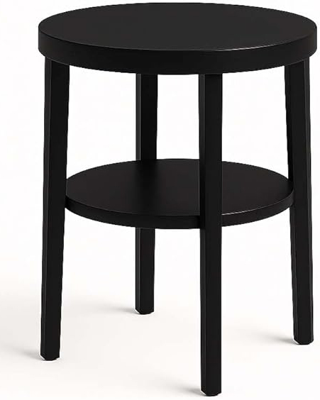 Round Mango Wood End Table with Storage – Black, 40.6x61 cm .