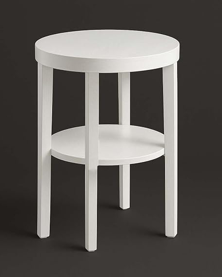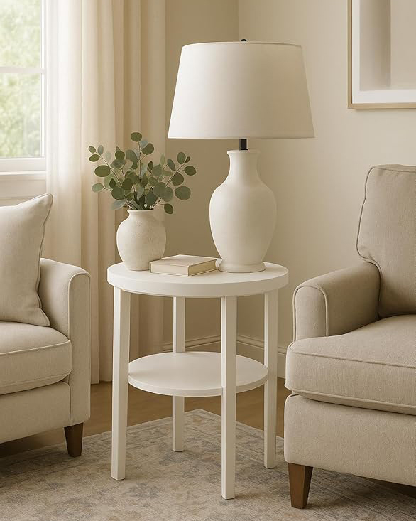 Round Mango Wood End Table with Storage – White Finish .