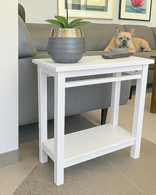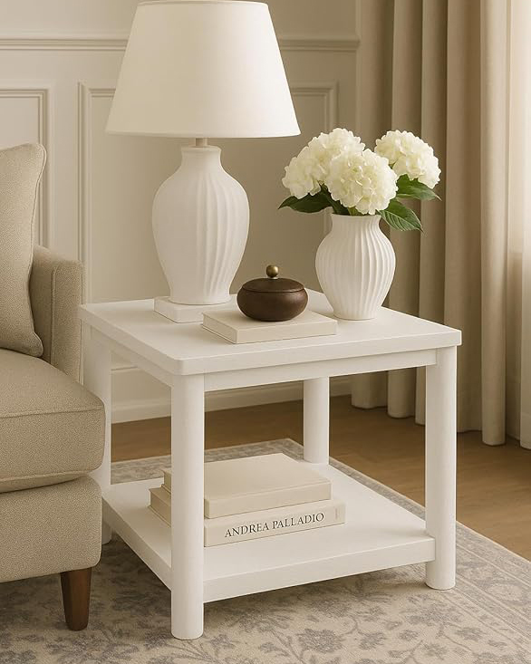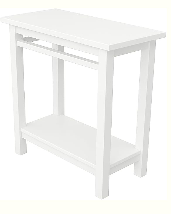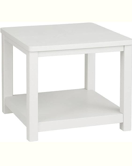 White Wooden End Table with Storage Shelf .