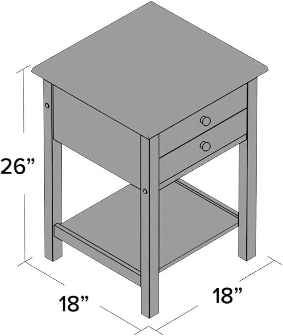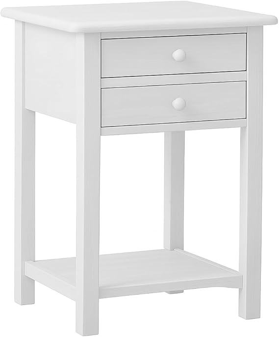 White Wooden End Table with 2 Drawers & Shelf – 45x45x65 cm.