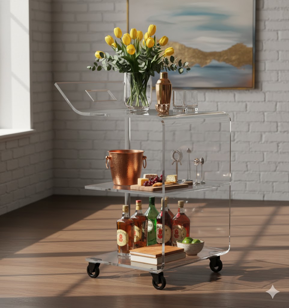 Elegant 3-Tier Plexiglass Buffet Trolley