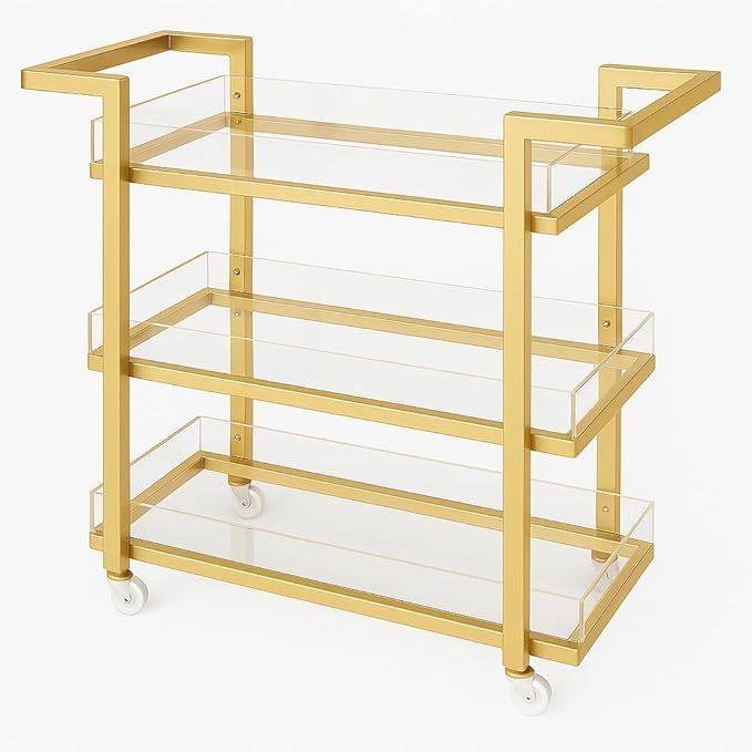 Elegant 3-Tier Gold & Acrylic Serving Trolley – 85×80×40 cm