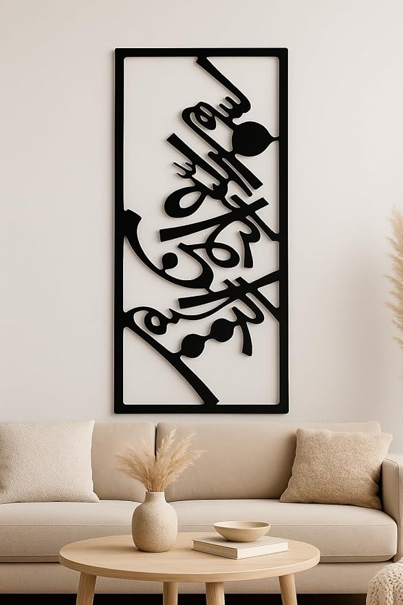 Enhance your space with this elegant Islamic Wooden calligraphy wall art in sleek black MDF. Measuring 20x40 cm with a 5mm thickness, it blends spirituality with modern minimalism, perfect for any home or office.