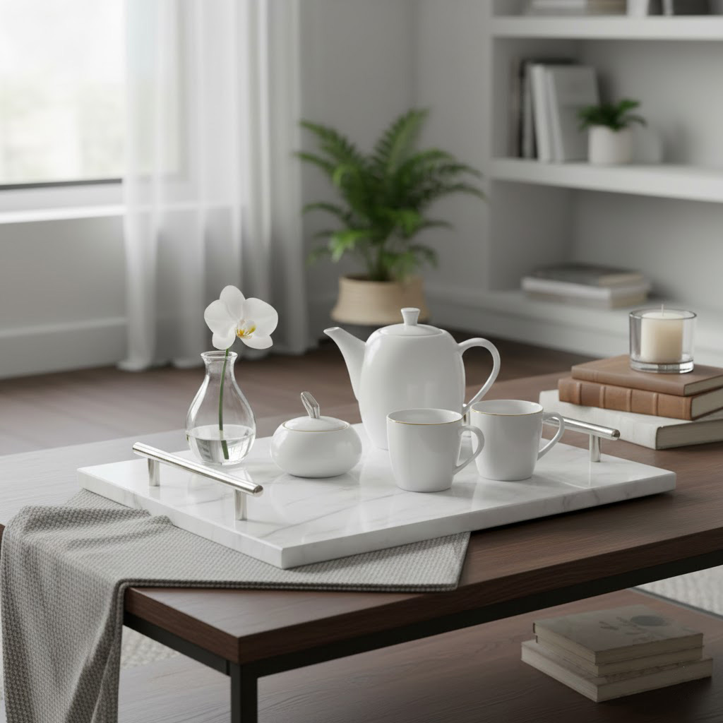 Elegant White Marble Tray – Luxury Serving & Decorative Piece